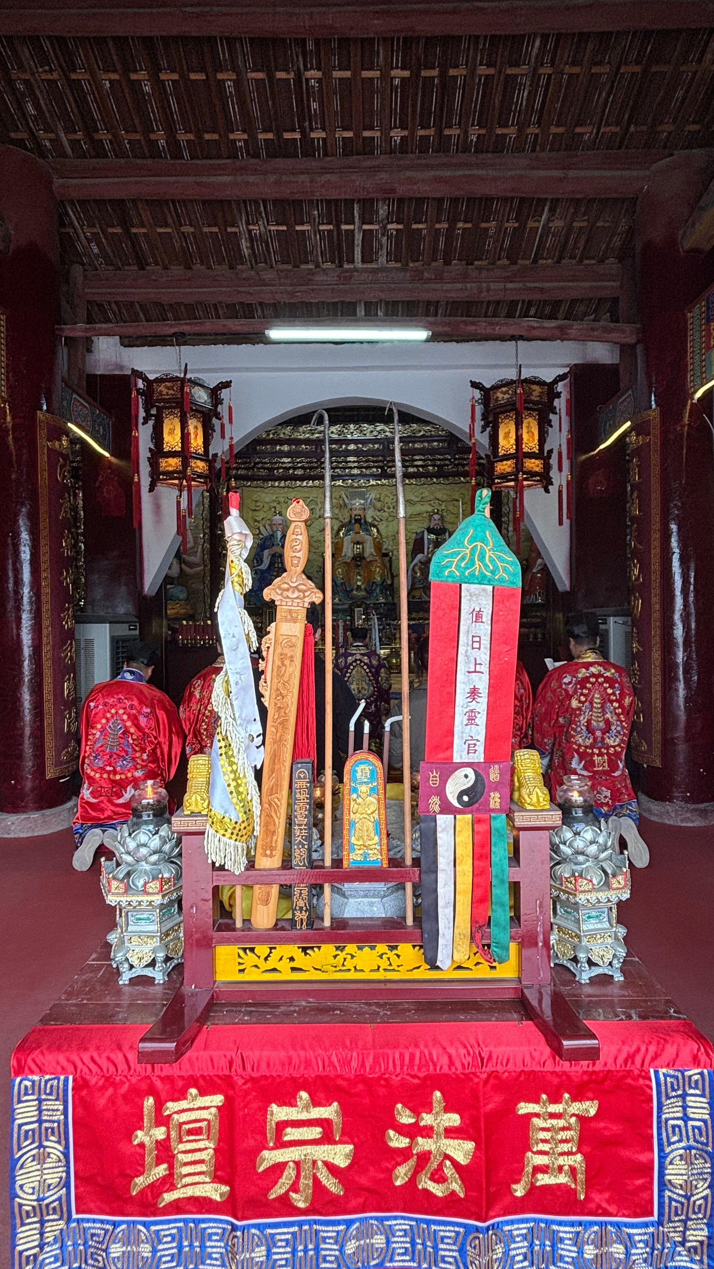 本次法會嚴格遵循正一道龍虎山傳統科儀,由高功法師汪道長親臨主壇,率眾弟子焚香演教、步罡踏鬥。在肅穆的絲竹樂聲中,法師們依循科儀,將各地福主疏文逐一上表,誠敬叩拜值年太歲文哲大將軍。整個過程法度嚴謹,氣場殊勝,充分彰顯了龍虎山天師道統千年傳承的正統性與專業性。